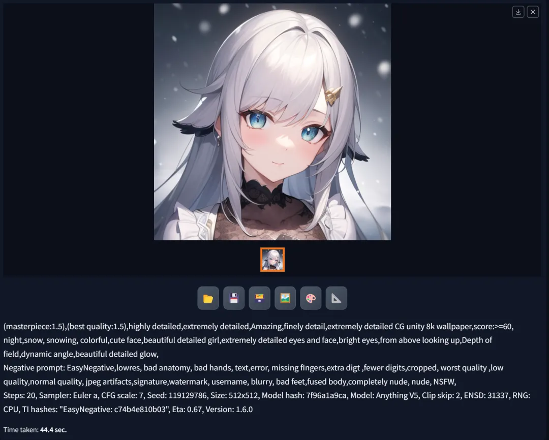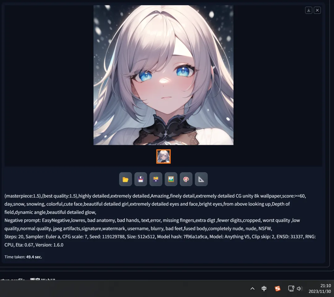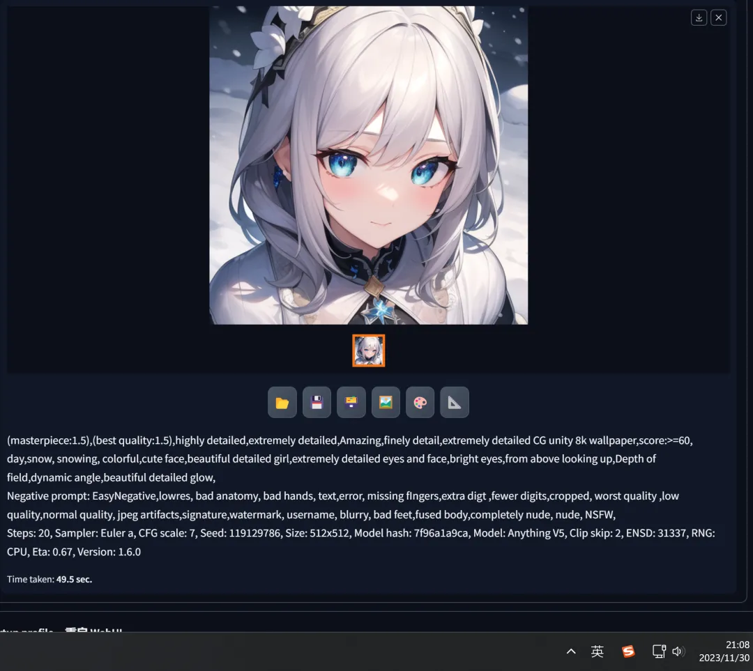 最后把提示词和“种子”重新修改为原本的版本,再次按下生成按钮,可见已经完全“复现”了原本的图像: