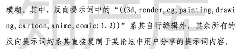 而其自行编辑的反向提示词,也并未超出常见范围,仅仅只是在已有的范围内进行挑选,并非其“独立创作”的结果。
