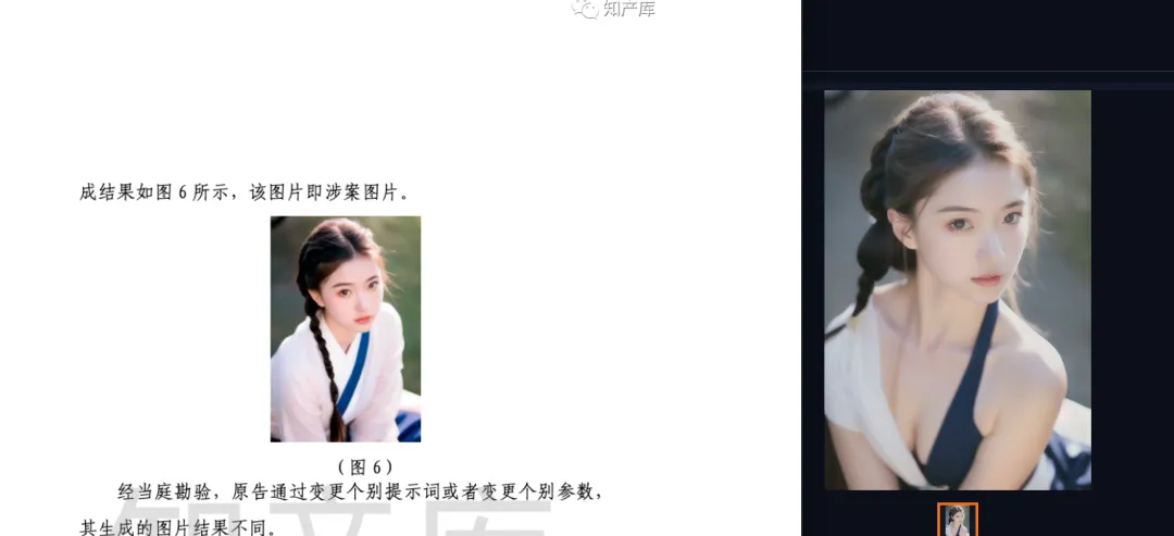 在判决书中,我们可以了解到原告在庭上展示了通过再次输入相关正反面提示词、迭代次数、LoRA模型权重等等参数,在固定了“种子”的情况下,重新生成出了涉案图像。