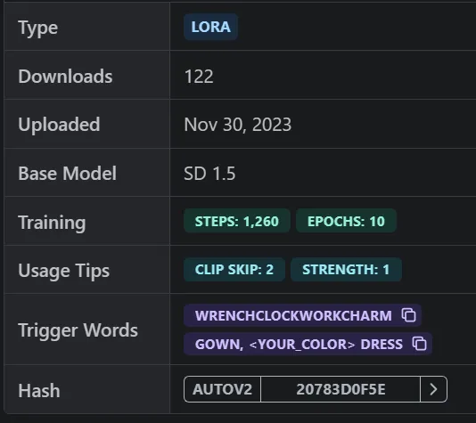 (Trigger Words,即触发提示词,必须输入到正向提示词中)