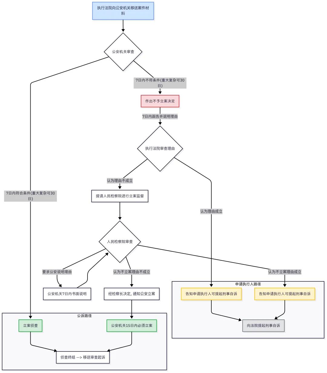 这是本次《法发〔2025〕8号意见》最大的亮点之一,它为申请执行人提供了在公权力介入受阻时的清晰救济方案。以往,若公安机关不立案,执行法院和申请人往往束手无策。《法发〔2025〕8号意见》第七、八、十二条构建了一个“法院提请 -> 检察院监督 -> 最终救济”的完整闭环。