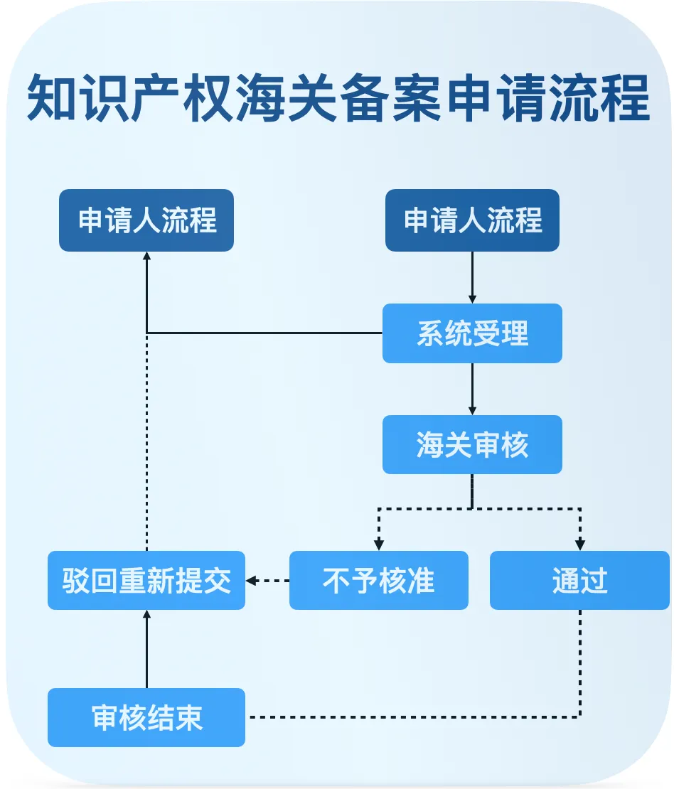 如前所述,在海关知识产权备案申请提交后,海关总署在30个工作日内作出核准或者驳回申请的决定。在实践当中,如备案申请人提交的主体信息,知识产权权利证明等信息或材料存在错误或不符合海关备案的要求,则可能导致知识产权备案不通过,需要重新申请备案。考虑到海关知识产权备案的审核期限,一次备案不通过,将导致至少两个月的海关知识产权保护空窗期,对于知识产权权利人而言,损失不可谓不大。