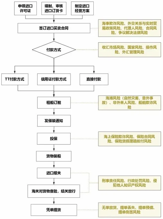 以常见的FOB为例,其进口基本流程及法律风险如下: