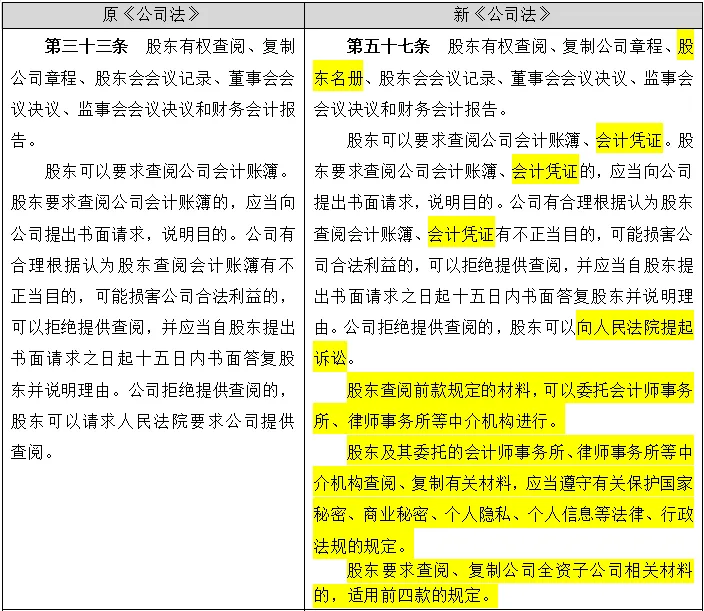 从上述表格可以看出,新《公司法》对于股东知情权的条款作出的主要修订如下:
