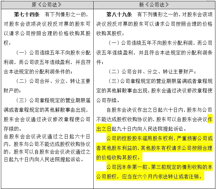 从上述对比表格来看,在新《公司法》下,面对滥用股东权利的大股东,小股东如不选择强制分红,其可选择要求公司按照合理的价格收购其股权,这一制度设计将更有利于维护小股东的权利。