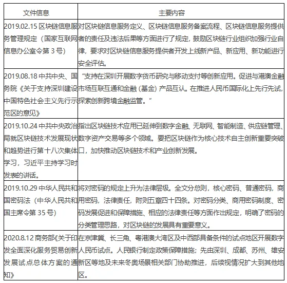 1.深圳:中共中央、国务院在2019年8月9日印发的《关于支持深圳建设中国特色社会主义先行示范区的意见》中明确,“支持在深圳开展数字货币研究与移动支付等创新应用。促进与港澳金融市场互联互通和金融(基金)产品互认。”