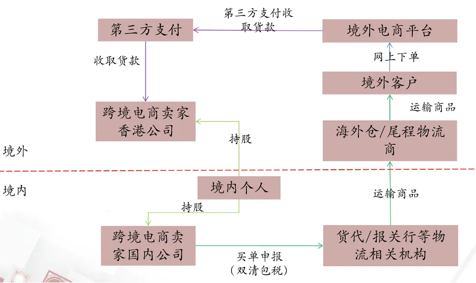 从上述交易架构图中可以看出,在“双清包税”模式下,跨境商家在海关监管系统不会留下货物报关出口的信息;而跨境商家通过其控制的离岸公司账户收取外汇,离岸公司账户再设法将外汇汇入境内,因此,货物流与资金流产生了不一致。