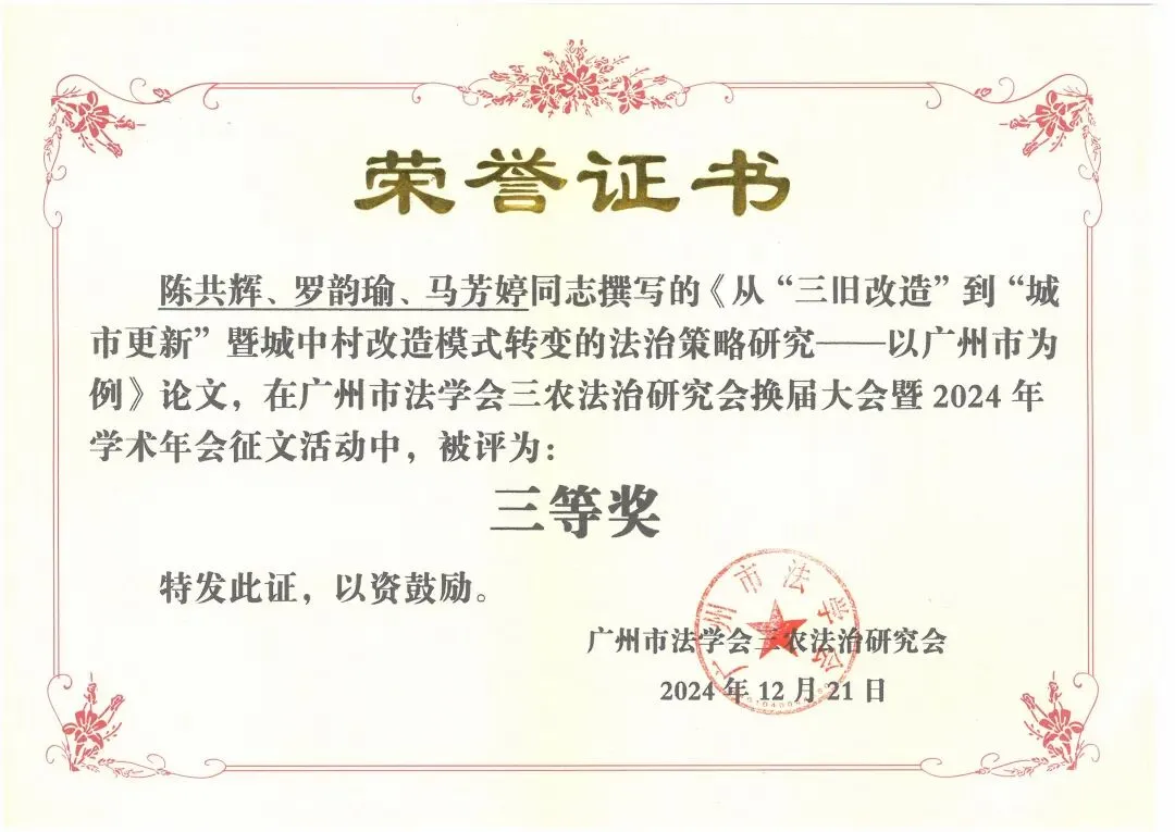 本文在广州市法学会三农法治研究会换届大会暨2024年学术年会征文活动中,被评为“三等奖”。
