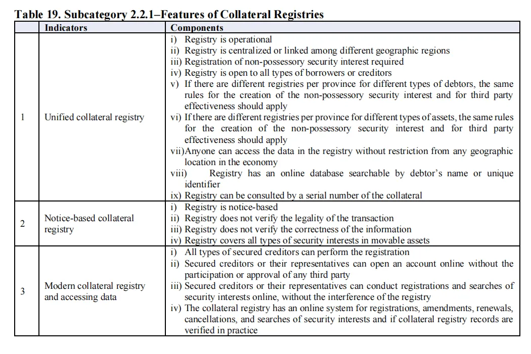 在学界及实务界对功能主义担保法立法观念存在不小质疑和困惑时,世界银行出台的新营商环境评估项目便是在担保法功能主义立法模式上一以贯之。世行出版的《方法论手册》(B-READY-Methodology-Handbook )第313页明确指出: