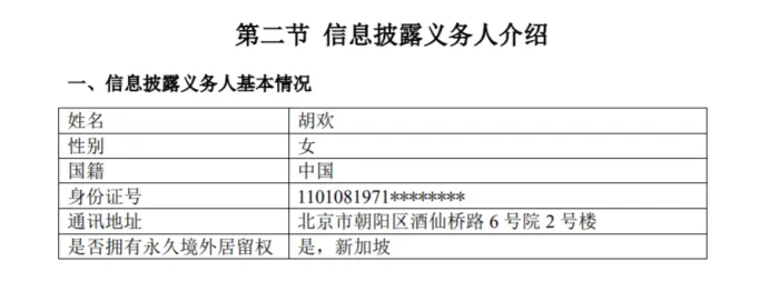 2、胡欢已经取得了新加坡永久居住权。